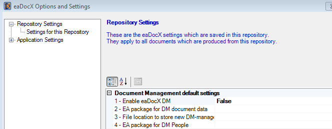 These are the settings which apply to a single repository, and control how eaDocX will create and mange documents which are generated from that repository: