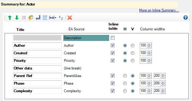 Checking the Inline Table option for some attributes makes the summary look like:
