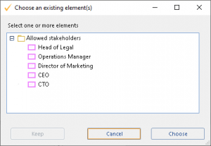 This package is not only managed by the ‘Stakeholders and Requirements’ RM, but has customization options, so that modellers in this package can only choose ‘Stakeholders’ from a specific package of existing ones.